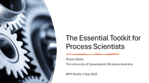 At BPM 2025, Shazia delivered her keynote “The Essential Toolkit for Process Scientists” structured around three foundational competencies: Comprehension, Compliance, and Change.